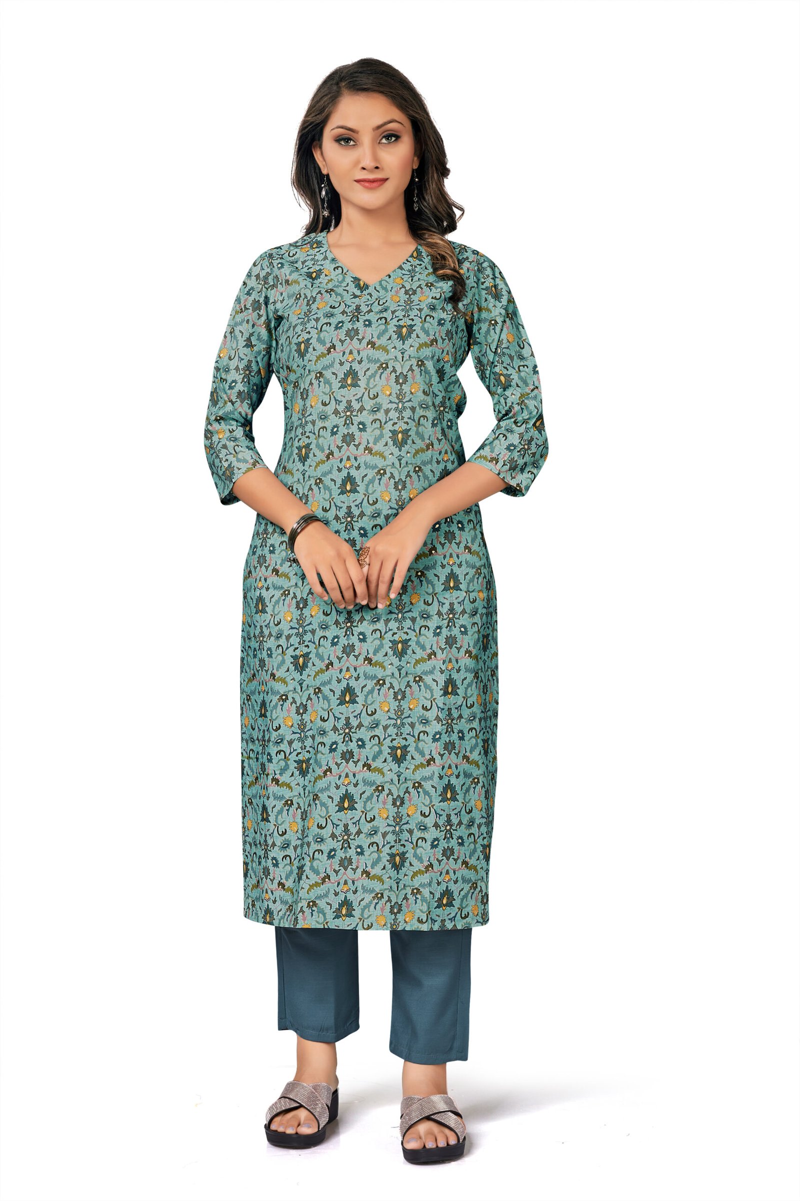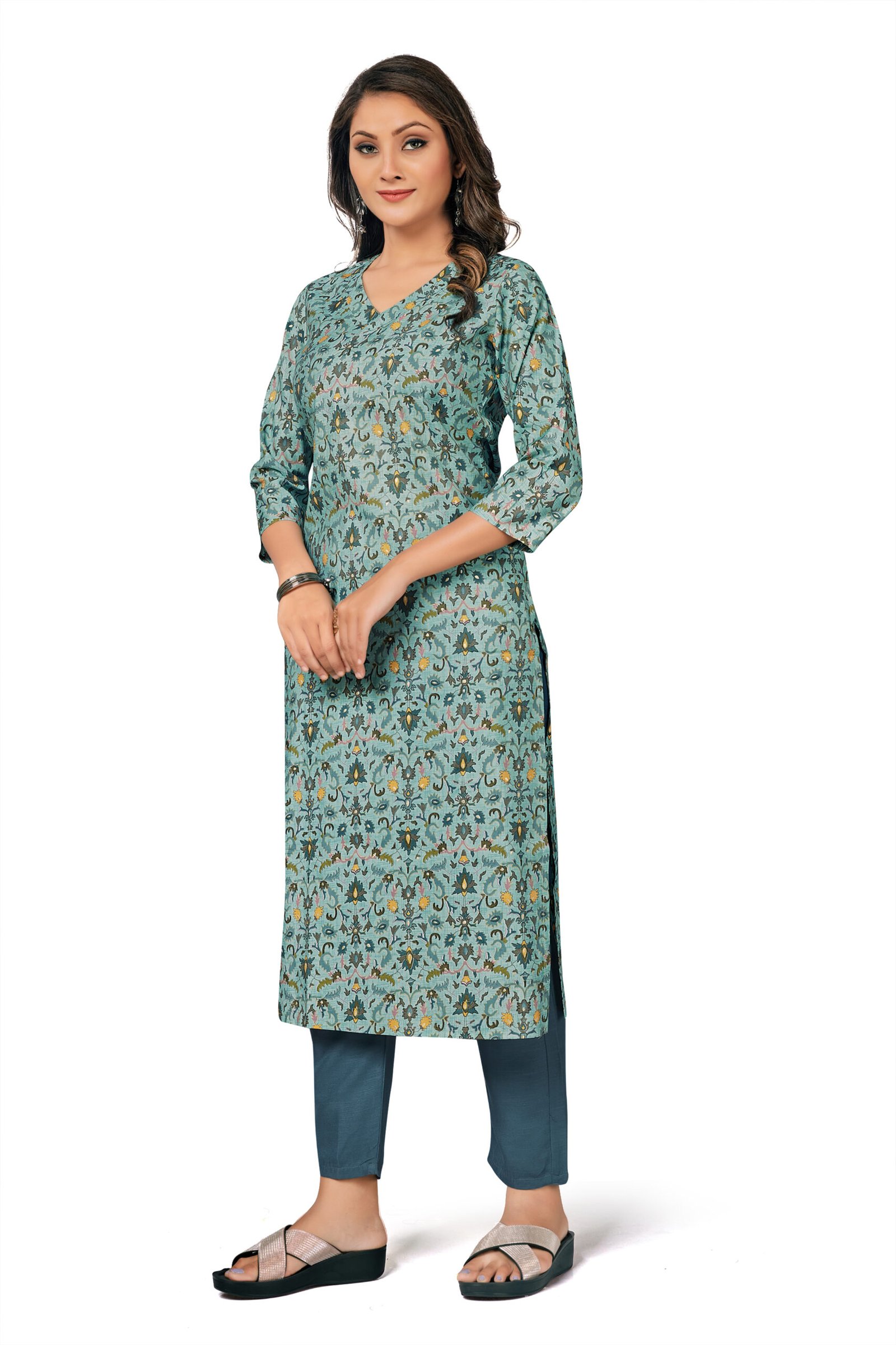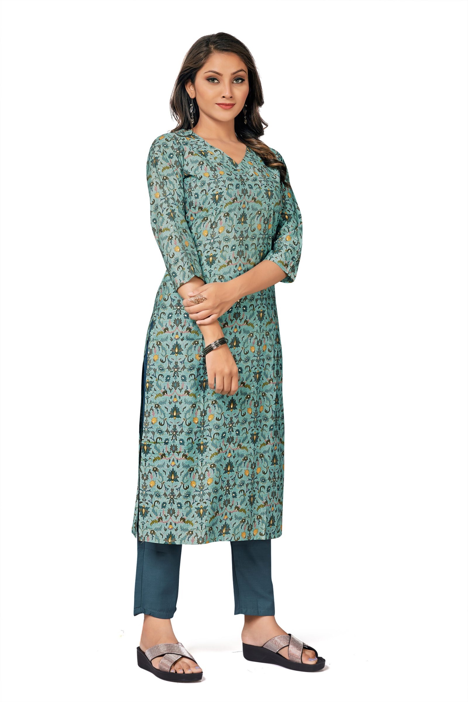 Refresh your ethnic collection with this graceful 2-piece set by KK Creation, crafted from lightweight and breathable Chanderi fabric. Designed in a soothing Lili Chatney shade with elegant prints, the ensemble offers a soft texture, beautiful drape, and all-day comfort. Perfect for everyday wear, office styling, and subtle festive occasions.