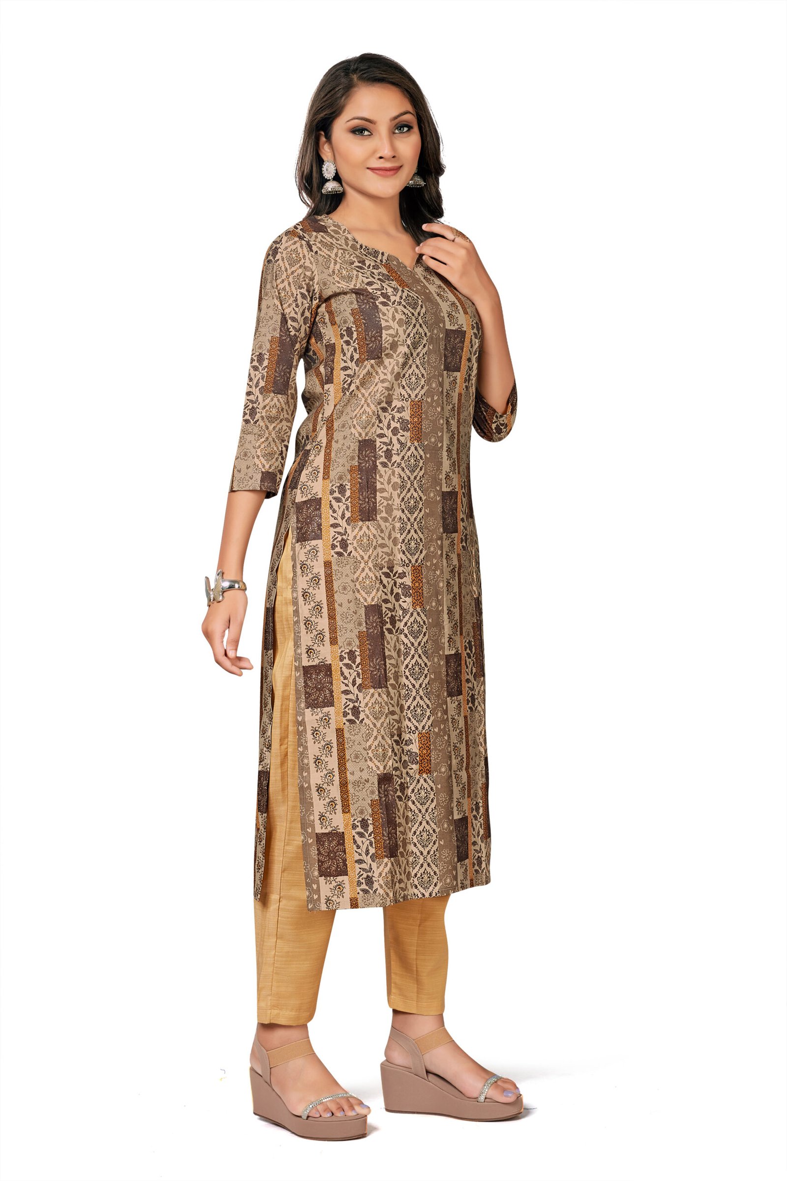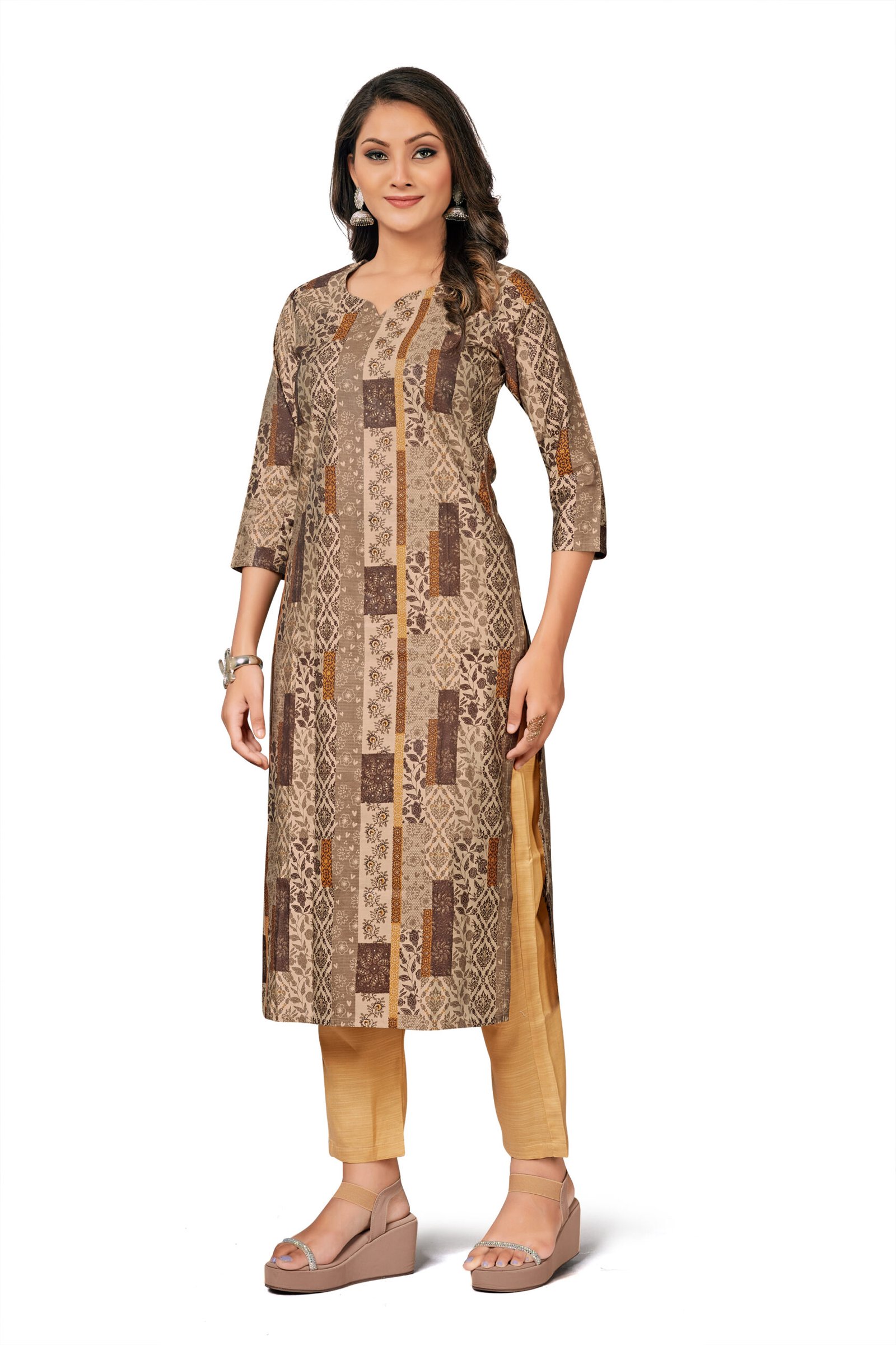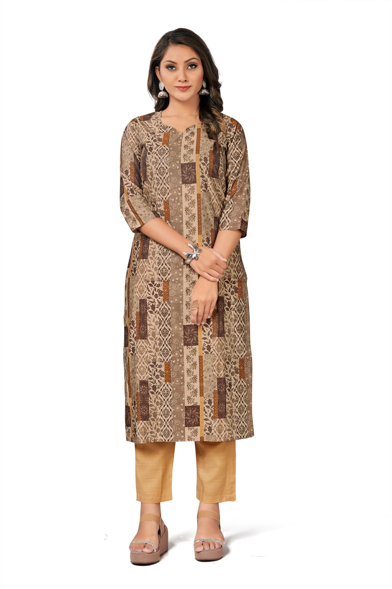 A stylish Poly Rayon brown printed 2-piece set — soft, lightweight, and designed for comfortable everyday elegance by KK Creation. Lightweight Poly Rayon brown printed 2-piece set for easy, elegant daily wear.